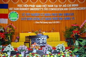 (GNO - Tp. HCM): Sáng nay 5-9, Học viện Phật giáo Việt Nam tổ chức Lễ tốt nghiệp Cử nhân Phật học khóa VII và khai giảng khóa IX tại Hội trường Nhà Truyền thống - Văn hóa Phật giáo Tp. HCM. Theo đó, 830 Tăng Ni sinh viên khóa VII của 6 khoa thuộc Học viện đã tốt nghiệp và 535 tân Tăng Ni sinh viên khóa IX (2011-2016) đã tham dự lễ khai giảng năm học thứ nhất, 2011-2012.