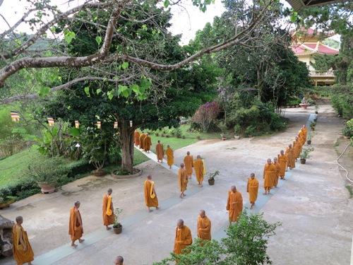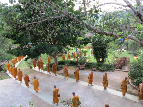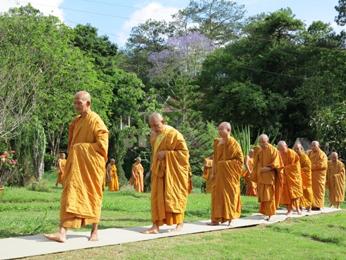 Quý hòa thượng và chư Tăng kinh hành trong chánh niệm