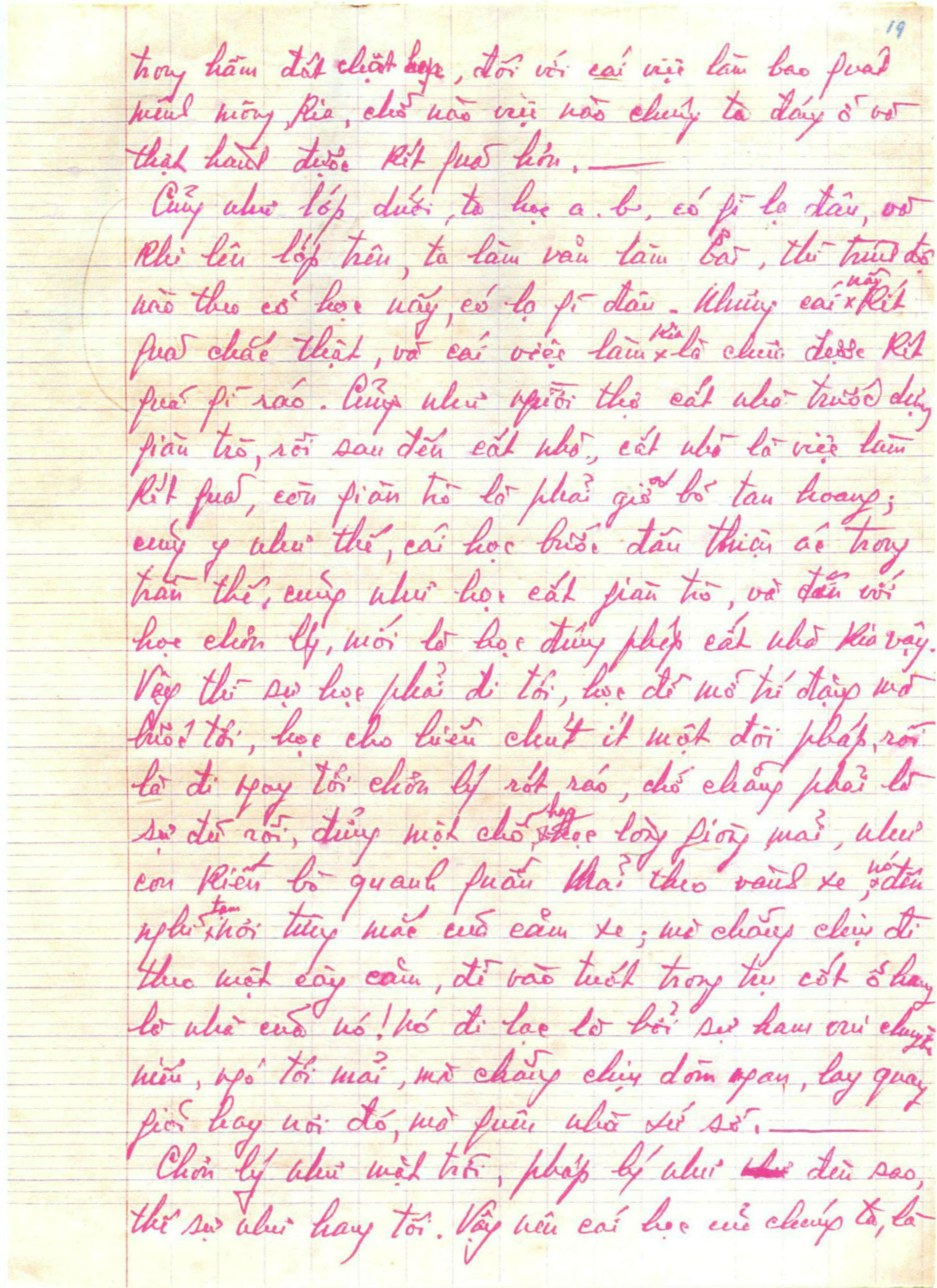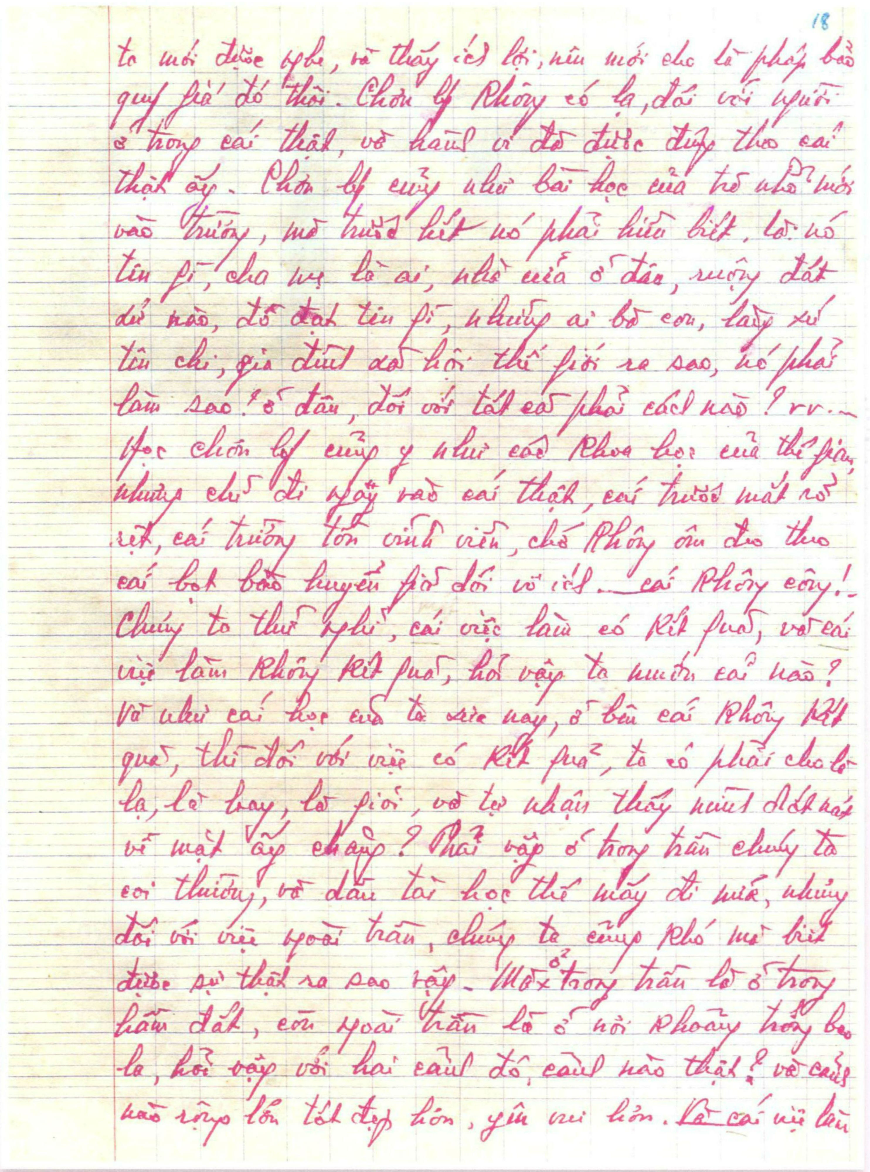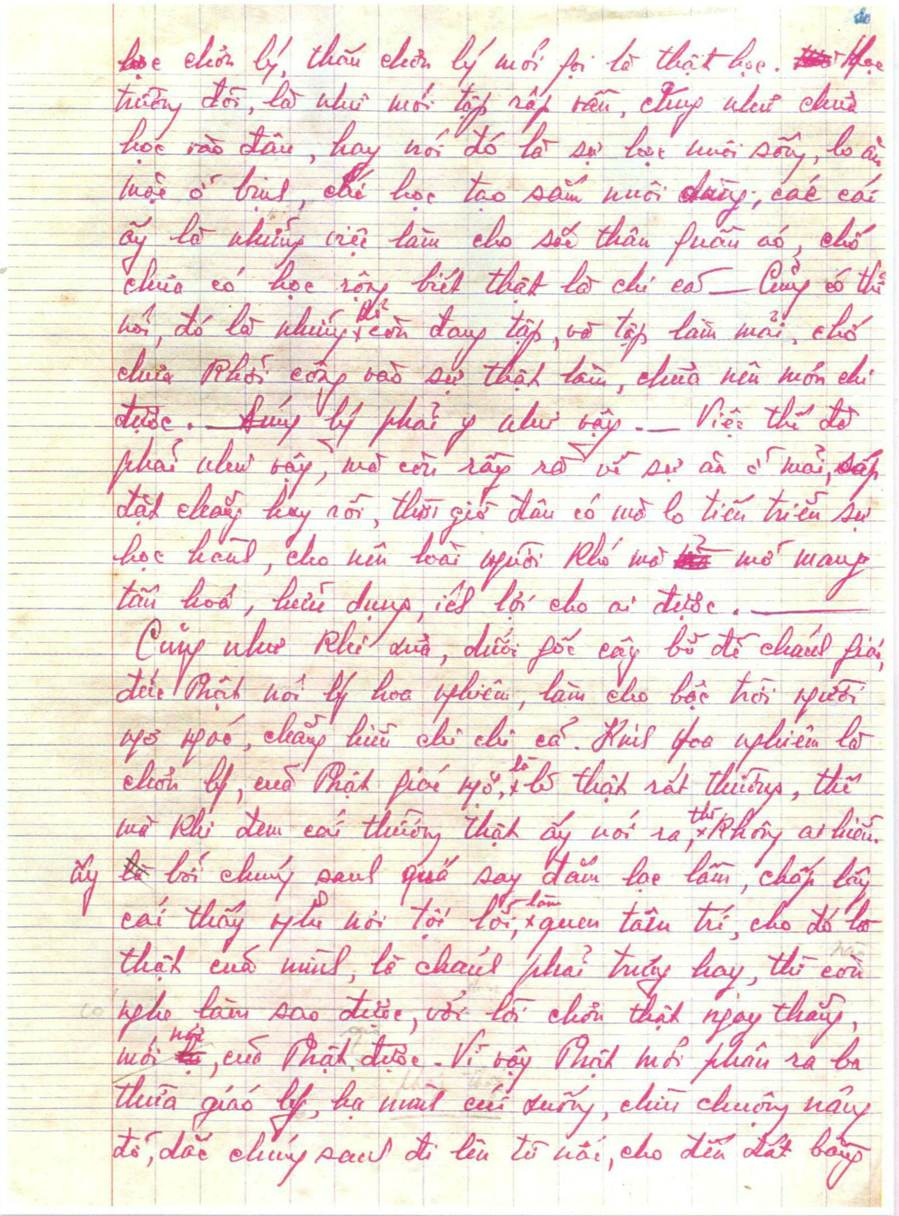 Gồm 24 trang vở học trò, viết tay bằng bút bi mực đỏ.