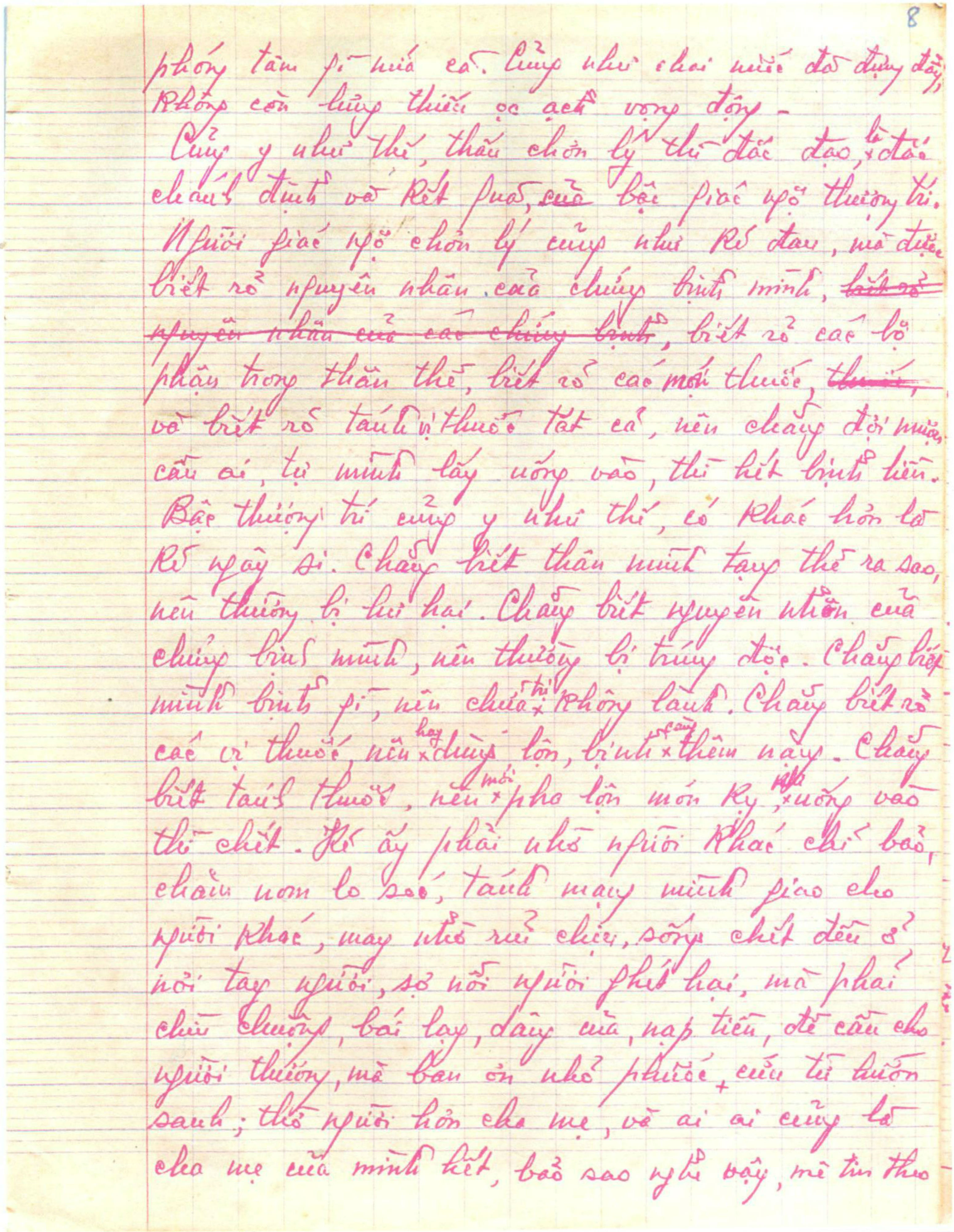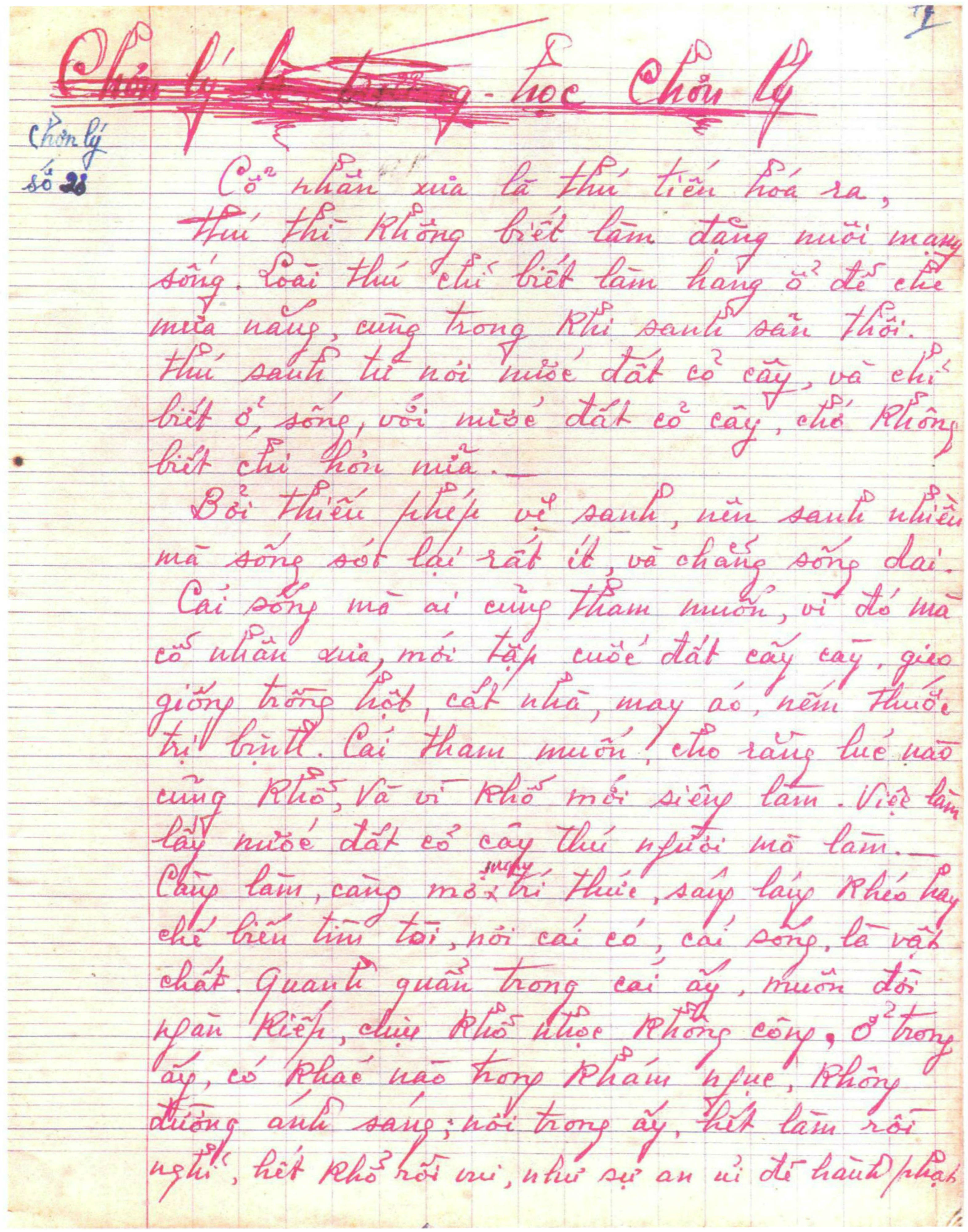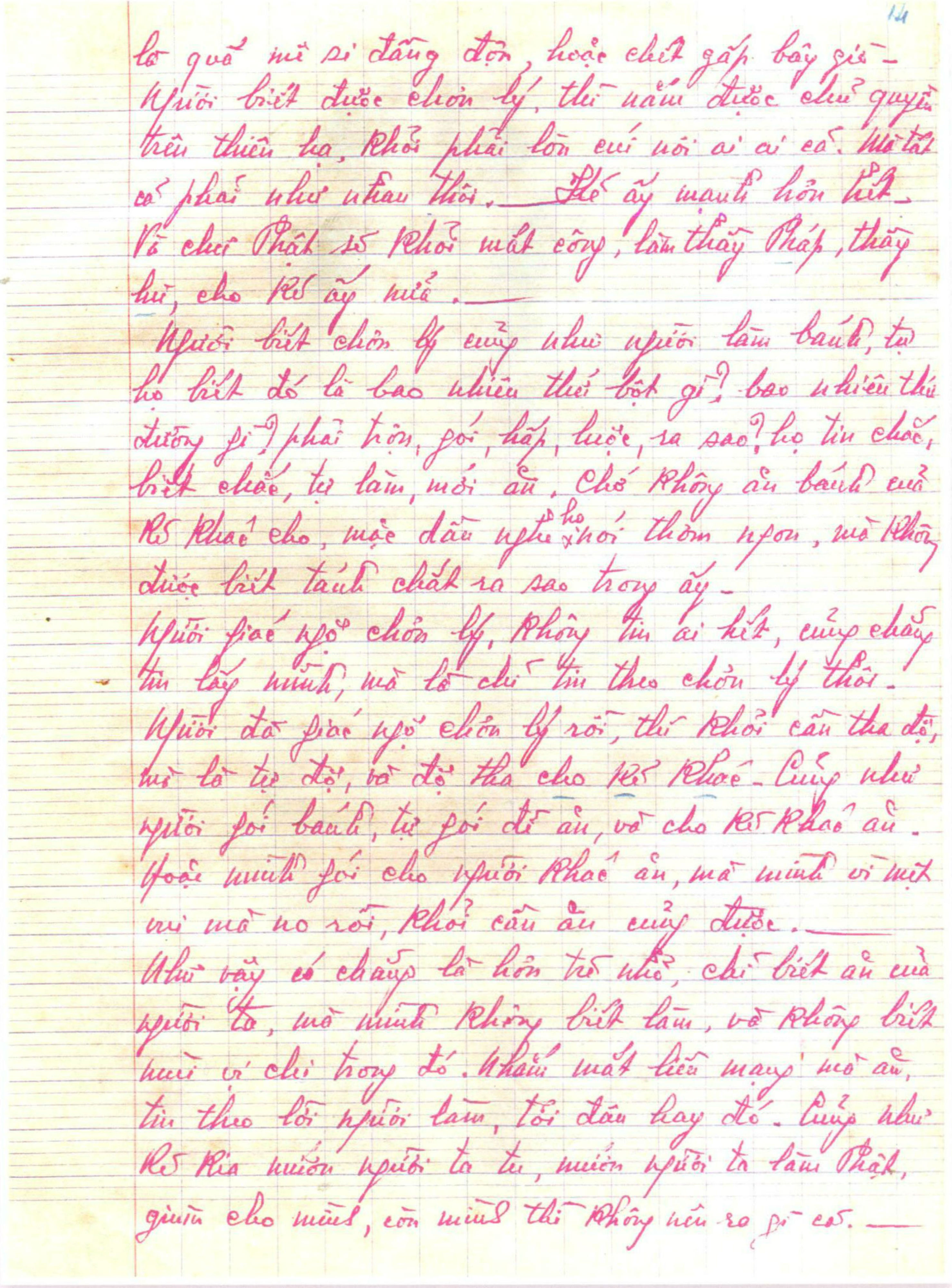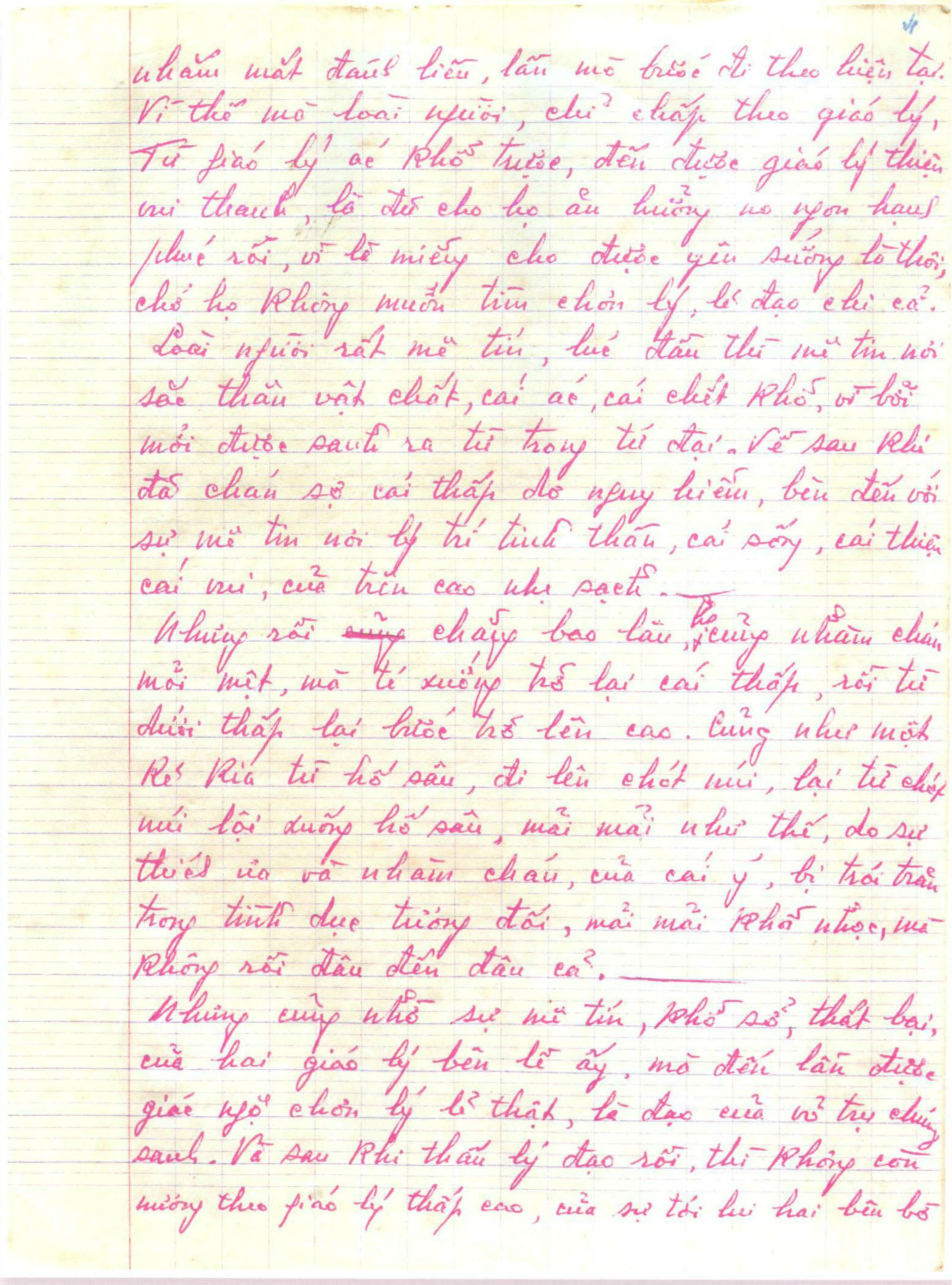 Gồm 24 trang vở học trò, viết tay bằng bút bi mực đỏ.