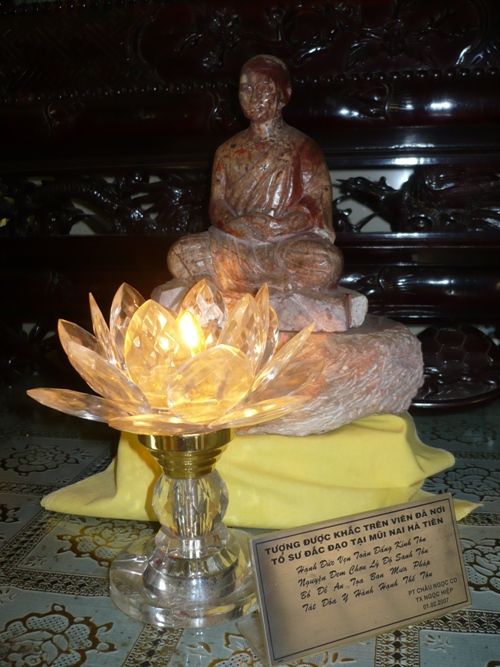 Bàn thờ Ni sư Nhơn Liên, một trưởng lão Ni tu hành tinh tấn, nhục thân có rất nhiều xá-lợi