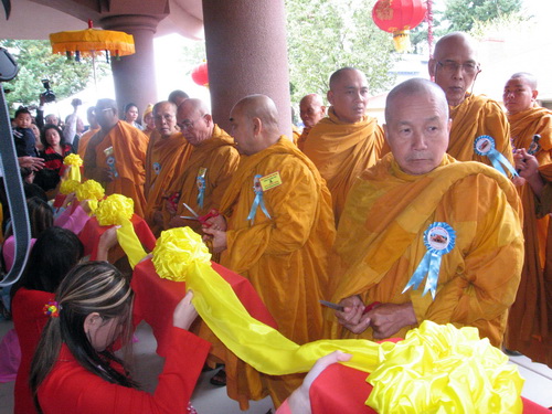Chư tôn đức đang cắt băng khánh thành