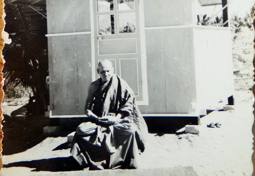 Đặc biệt, còn có một tấm ngài Giác An mặc y xếp chân ngồi trước cốc như vậy nữa, nhưng đem đặt bàn thờ trước mặt, hòa thượng kể. Tôi liền nói có nghe chuyện đó, nhưng mà kể ngài ngồi trên bàn thờ và bảo chư Tăng ai có phát nguyện gì thì ngài chứng minh cho. Hòa thượng Hoằng bảo không phải, chỉ ngồi trước cốc sau khi ra thất và đặt bàn thờ trước mặt thôi, chứ không có chuyện ngồi trên bàn thờ và biểu ai phát nguyện gì cả.